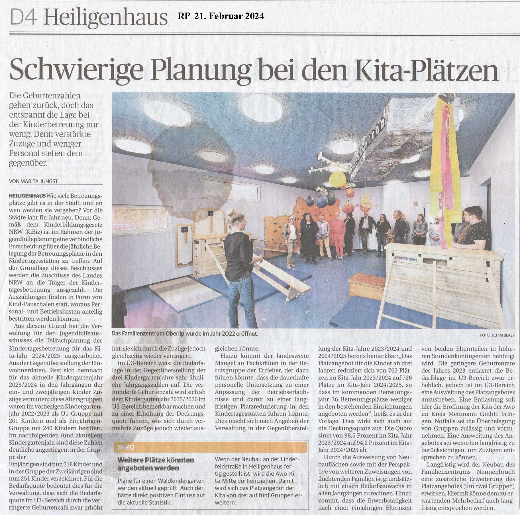 Schwierige Planung bei den Kita-Plätzen (RP 21. Februar 2024)