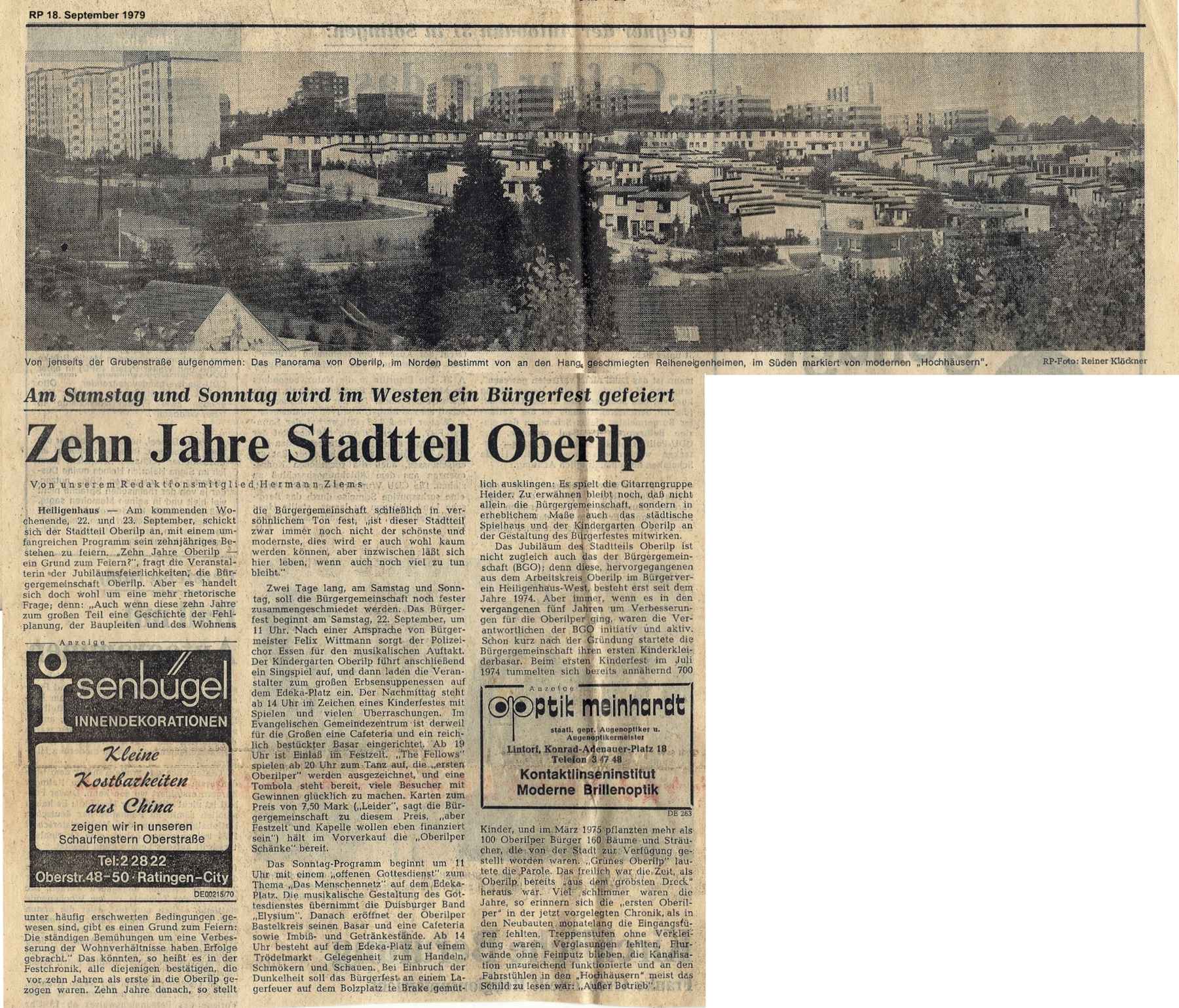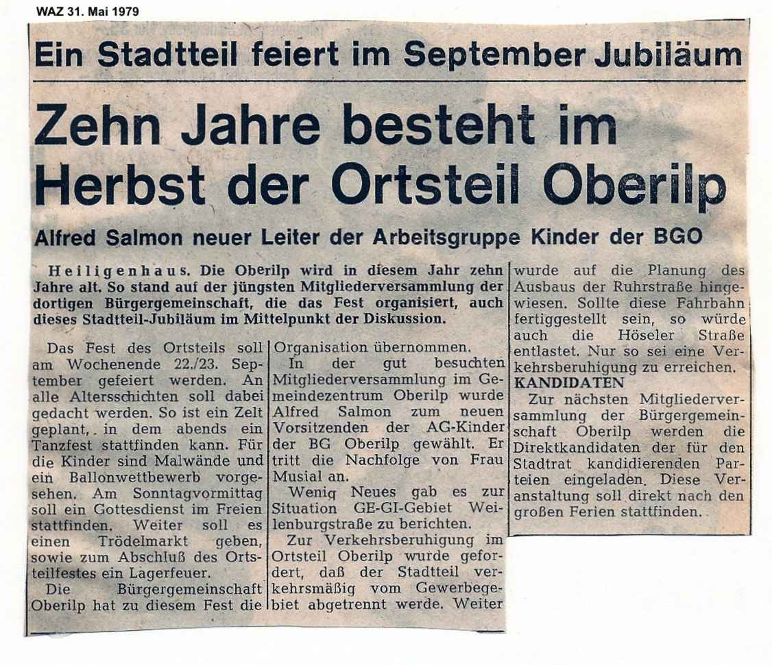 Zehn Jahre besteht im Herbst der Ortsteil Oberilp (WAZ 31. Mai 1979)