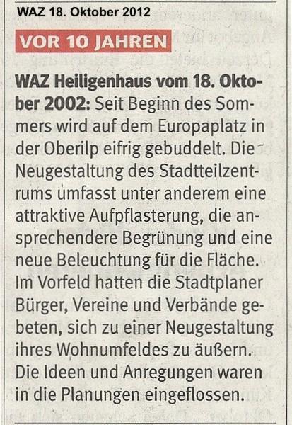 WAZ Heiligenhaus vom 18. Dezember 2002: Lange wird es nicht mehr dauern, bis die