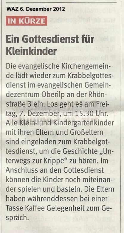 und Großeltern sind eingeladen zum Krab- belgottesdienst, um die Geschichte