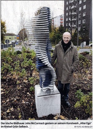 Kreisverkehrs wird durch eine Skulptur des Bildhauers John McCormack aufgewertet ...