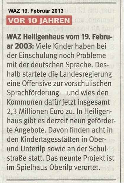 WAZ Heiligenhaus vom 13. Dezember 2003: "Geimsam loslegen" ist