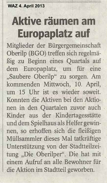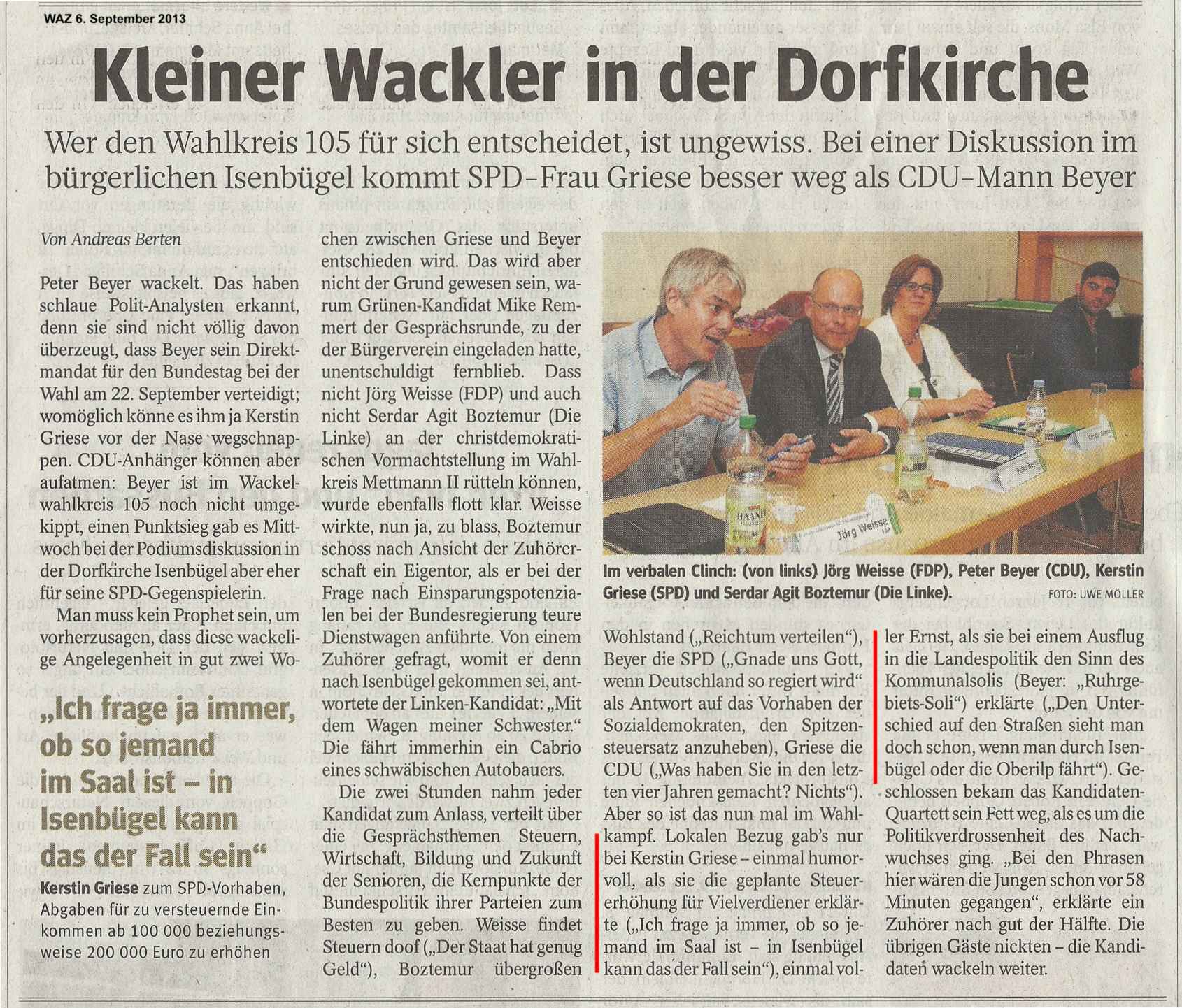 Besuch (WAZ 22.1. 2013 mit Korrektur nebenstehender Meldung vom 18.1.)