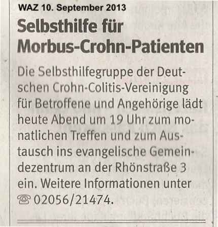 Die Selbsthilfegruppe Morbus Crohn/Colitis Ulcerosa bietet regelmäßig
