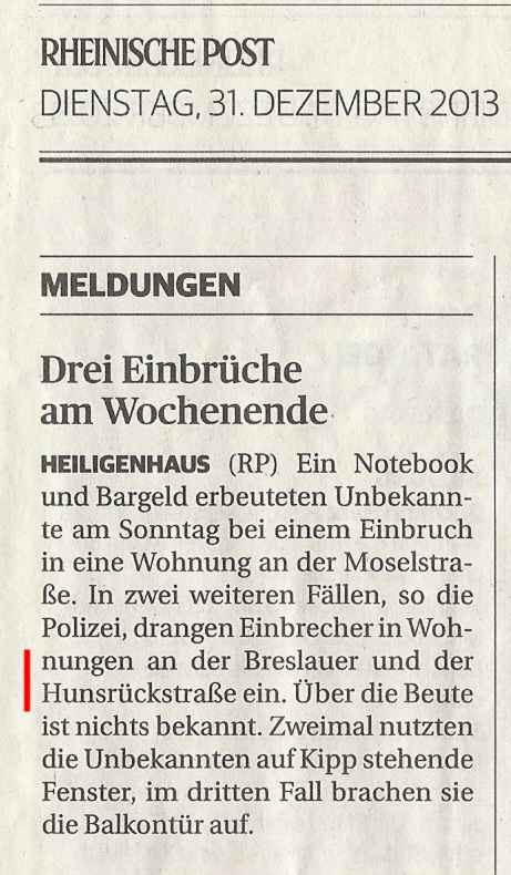 Einbrecher in Wohnungen an der Breslauer und der Hunsrückstraße ein. Über die Beute