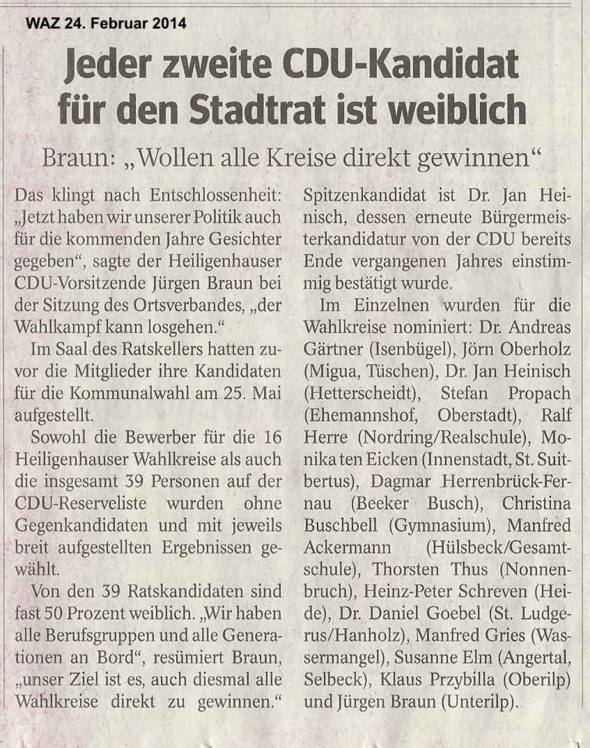 Die SPD Kandidaten für die einzelnen Wahlbezirke (WAZ 27. Januar 2014)