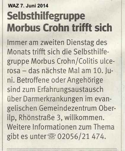 Die Selbsthilfegruppe Morbus Crohn/Colitis ulcerosa trifft sich um 19 Uhr