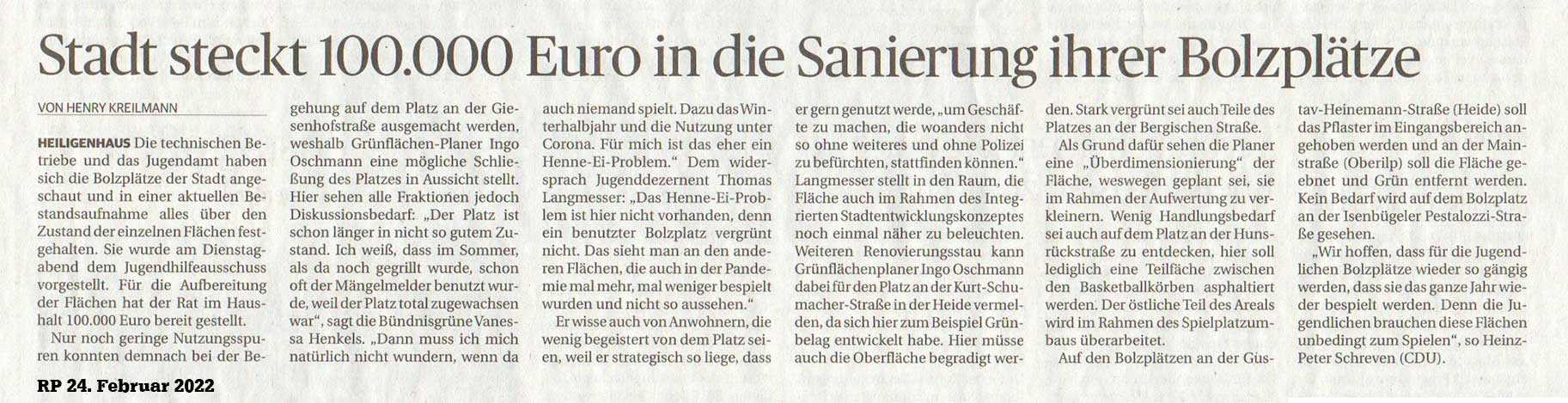 Stadt steckt 100.000 Euro in die Sanierung ihrer Bolzplätze (RP 24.2. 2022)